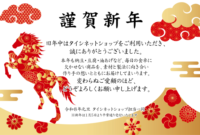 2025年12月31日(水)~2026年1月4日(日)まで休業 *年内最終ご注文受付日時 2025年12月30日(火) 午後14:00まで *年始ご注文受付開始日時 2026年1月5日(月)